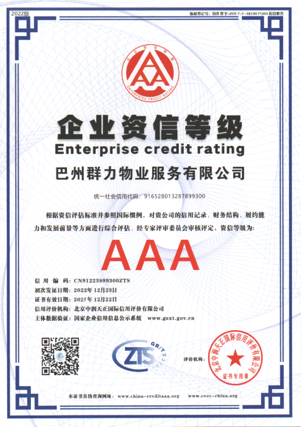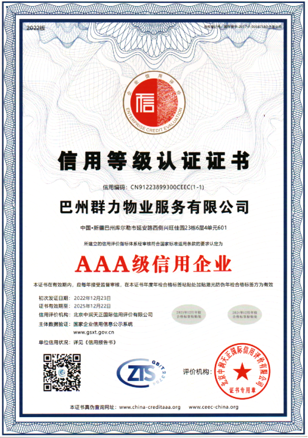 居民對美好生活環境的向往,就是我們的奮斗目標。近幾年, 群力物業深入分析、準確把握當前形勢,把初心落在行動上、把 使命擔在肩膀上,正視困難、問題,堅定信心、決心,乘勢而上、 主動作為,著力提高專業化能力、統籌兼顧能力,真正把精力集 中到干事創業上來。對各項具體工作、目標、任務進行科學分解, 認真貫徹、落實新時期黨的治疆方略,緊扣社會穩定和長治久安 總目標,堅持新發展理念,堅持穩中求進工作總基調,堅持高質 量發展,凝練、總結以往工作成績...